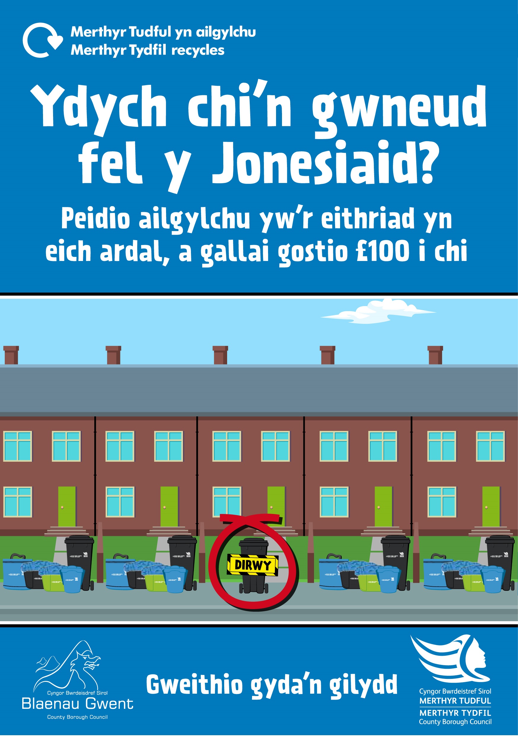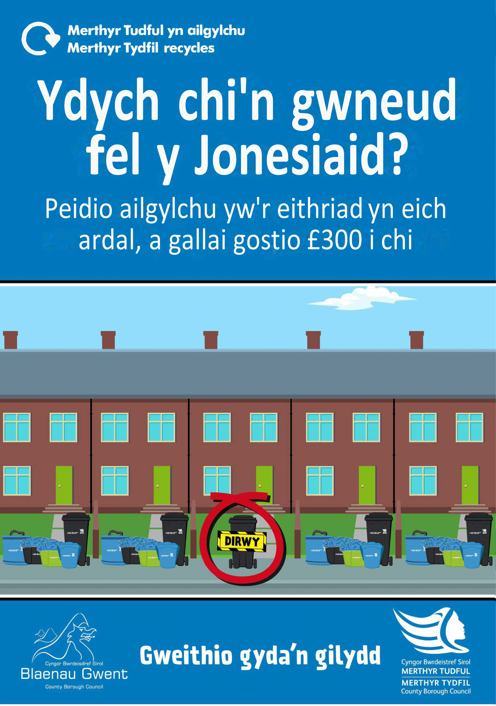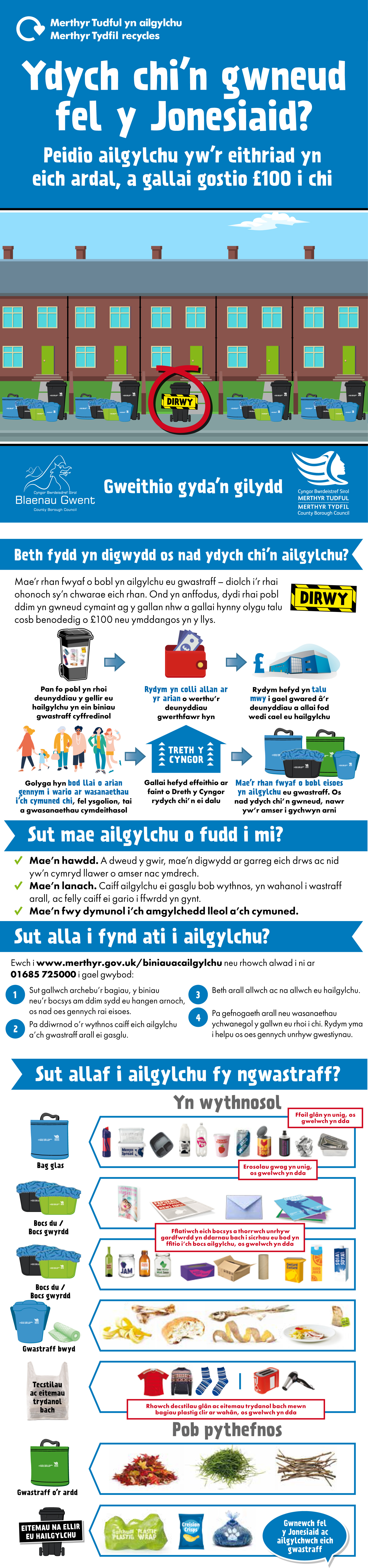 Ailgylchu yn y cartref ym Merthyr Tudful