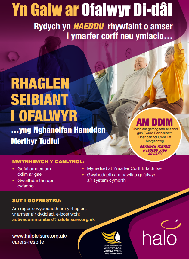 A hoffech chi dderbyn cefnogaeth, gwybodaeth neu gyngor? Mae’n bosib y gall Partneriaeth Gofalwyr Digyflog Merthyr Tudful eich helpu!